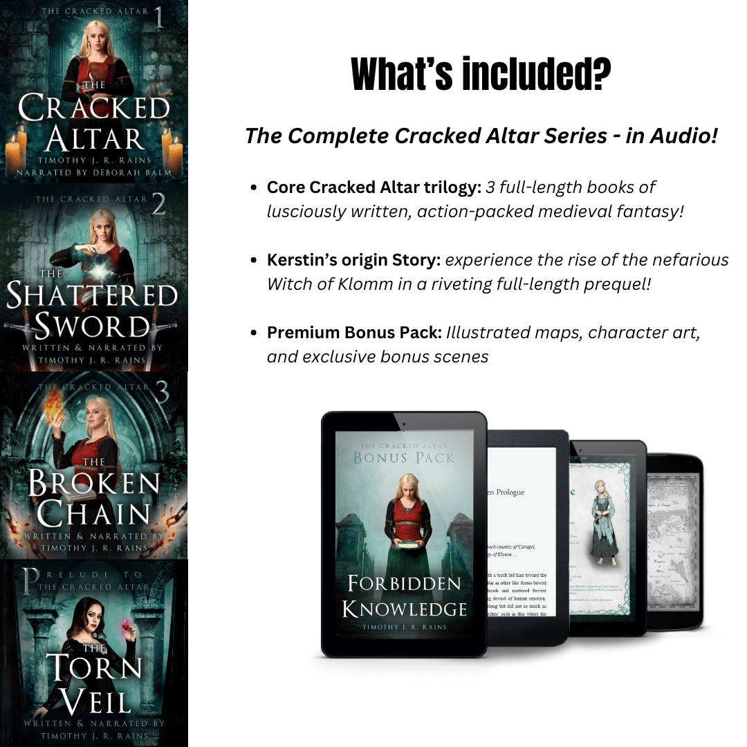 Still unsure? Start reading Chapter One of The Cracked Altar Here and see why readers cherish this medieval fantasy series!"